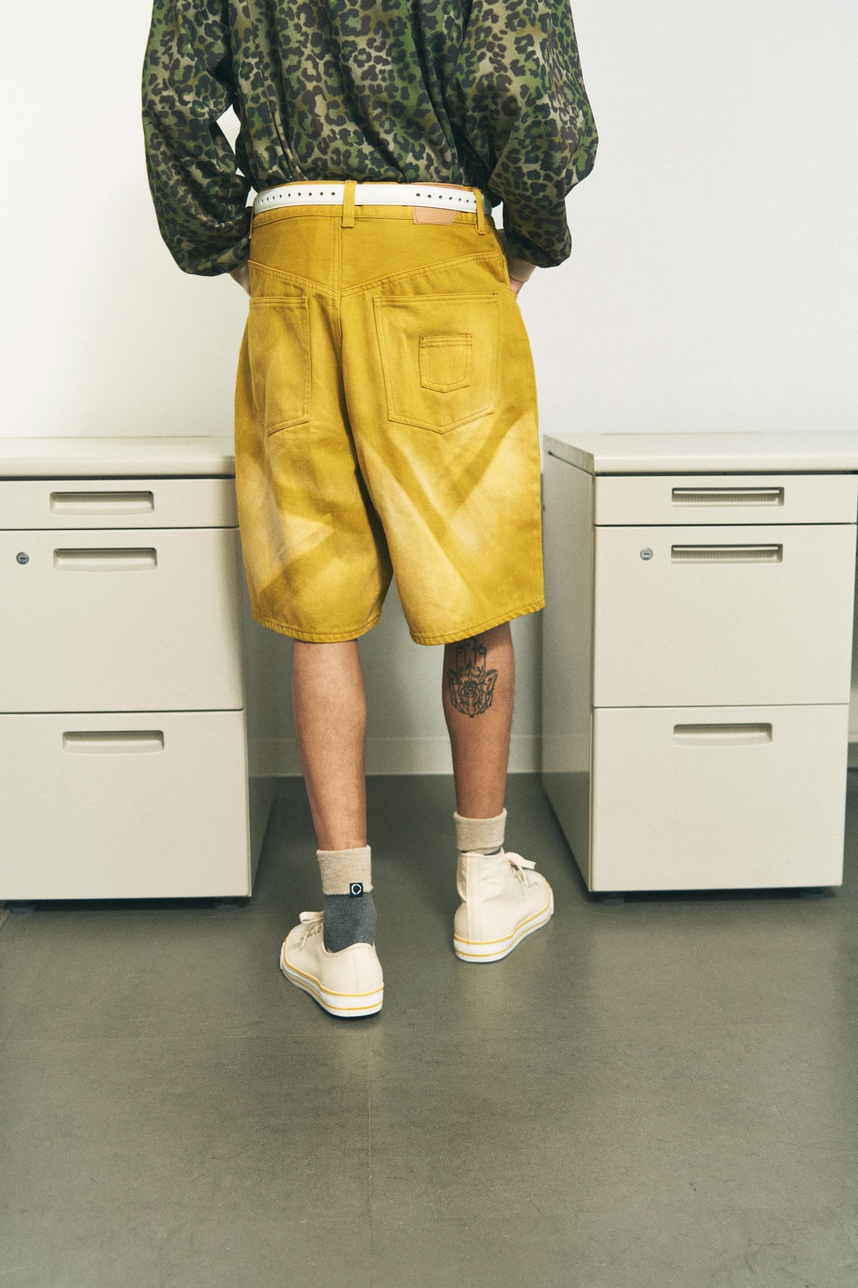 PHINGERIN’s signature denim series is back in a shorts version for the spring/summer. A reinterpretation of the classic 5-pocket silhouette with a playful twist; a discreet sixth pocket placed at the center of the back pocket, earning them the “6 POCKET” name. While the design remains understated, this unexpected detail serves as a bold accent. This laser treated color denim is available in a vibrant lime green and red, each pair is finished with contrast stitching to highlight its character. The back pockets are set slightly lower than standard, making them a standout feature when styled to be seen. The chain stitching on the hem of the shorts and the color fading caused by puckering are also great features.