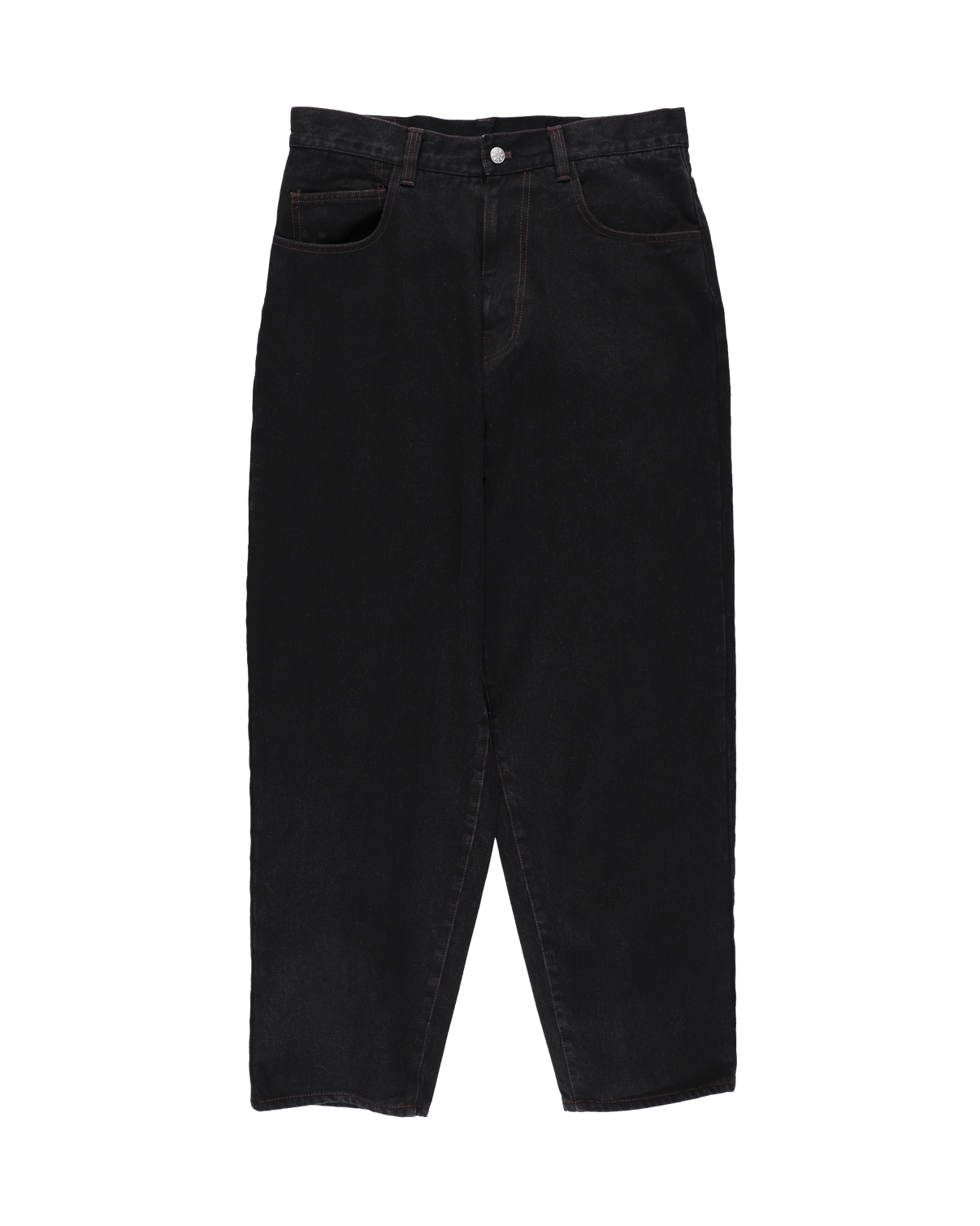 PHINGERIN’s signature jeans reinterpret the classic 5-pocket silhouette with a playful twist; a discreet sixth pocket tucked at the center of the back pocket, earning them the name “6 POCKET JEANS.” While the design remains understated, this unexpected detail serves as a bold accent. Available in classic sax, indigo, and black denim, each pair is finished with contrast stitching to highlight its character. The back pockets are set slightly lower than standard, making them a standout feature when styled to be seen. With a clean tapered silhouette, the jeans maintain a sharp look even when worn with a relaxed fit, perfectly balancing both casual and refined looks.