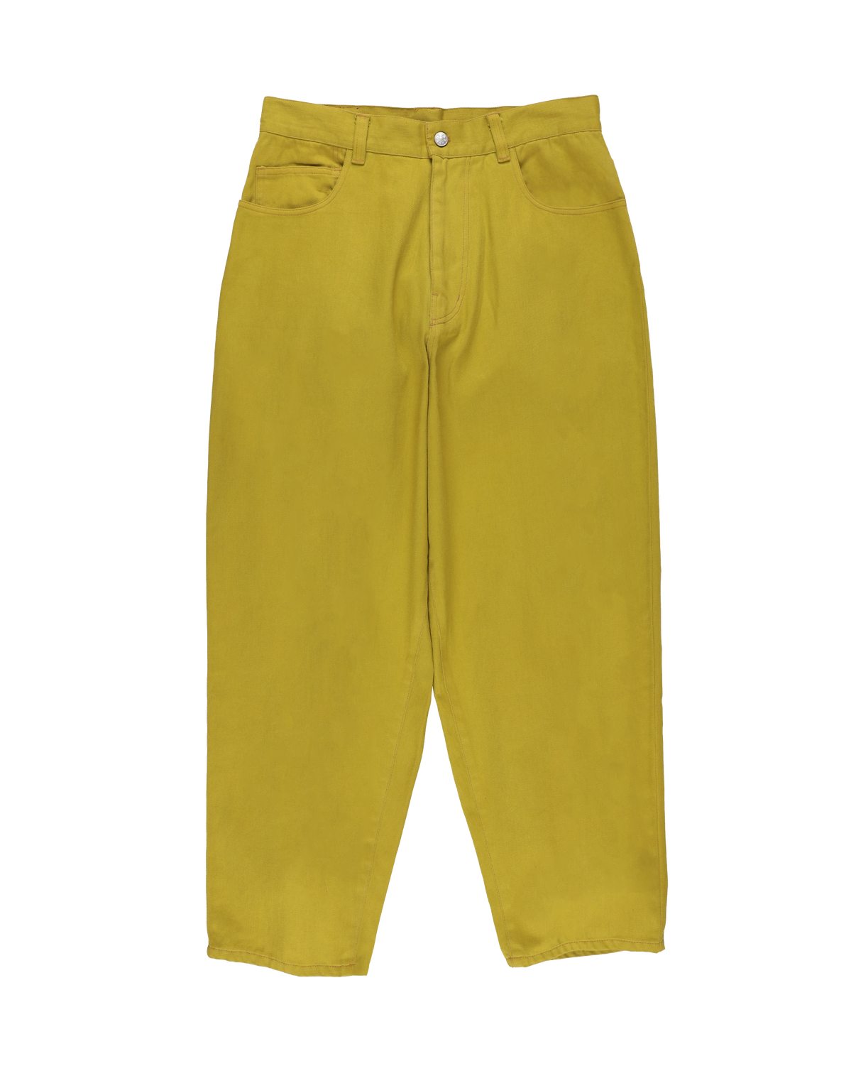 PHINGERIN’s signature jeans reinterpret the classic 5-pocket silhouette with a playful twist; a discreet sixth pocket tucked at the center of the back pocket, earning them the name “6 POCKET JEANS.” While the design remains understated, this unexpected detail serves as a bold accent. Available in a colorful white, lime green, and red, each pair is finished with contrast stitching to highlight its character. The back pockets are set slightly lower than standard, making them a standout feature when styled to be seen. With a clean tapered silhouette, the jeans maintain a sharp look even when worn with a relaxed fit, perfectly balancing both casual and refined looks.