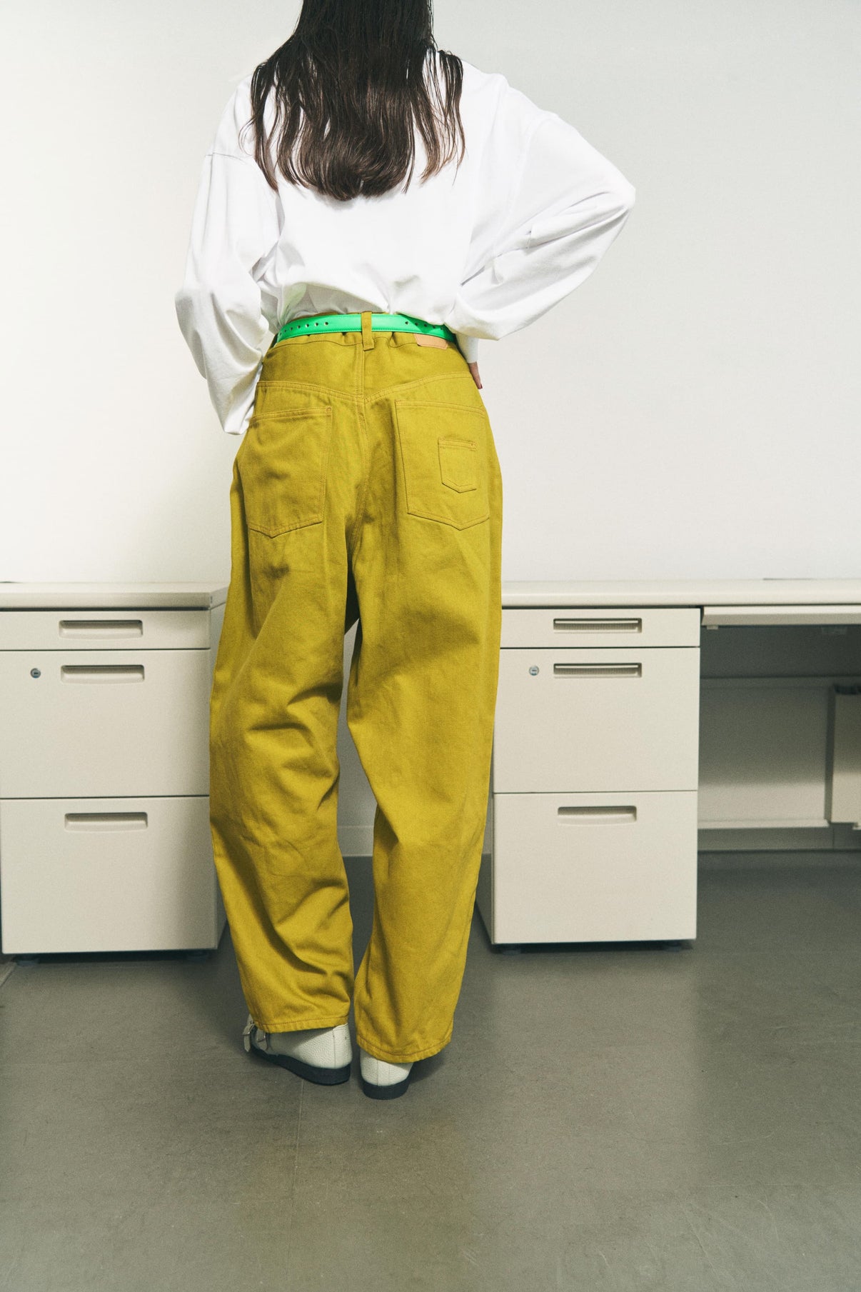 PHINGERINの定番ジーンズをニューカラーで、スタンダードな5ポケット + バック ライトの中央にタイニーなバックポケットがパッチされた"6 POCKET JEANS" 、 素朴ですが、6つ目のポケットがとても強いディテール。白、レッドとライムがホットな雰囲気、それぞれコントラストするステッチで仕上げています。バックポケットは少しドロップめに配置されているおりバックポケットを見せるようなスタイリングもおすすめ、ルーズに履いてもクリーンな雰囲気をキープできるテーパーシルエット。
