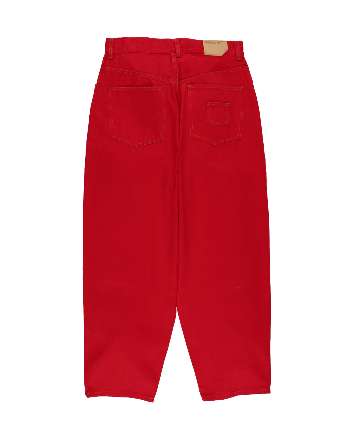PHINGERIN’s signature jeans reinterpret the classic 5-pocket silhouette with a playful twist; a discreet sixth pocket tucked at the center of the back pocket, earning them the name “6 POCKET JEANS.” While the design remains understated, this unexpected detail serves as a bold accent. Available in a colorful white, lime green, and red, each pair is finished with contrast stitching to highlight its character. The back pockets are set slightly lower than standard, making them a standout feature when styled to be seen. With a clean tapered silhouette, the jeans maintain a sharp look even when worn with a relaxed fit, perfectly balancing both casual and refined looks.