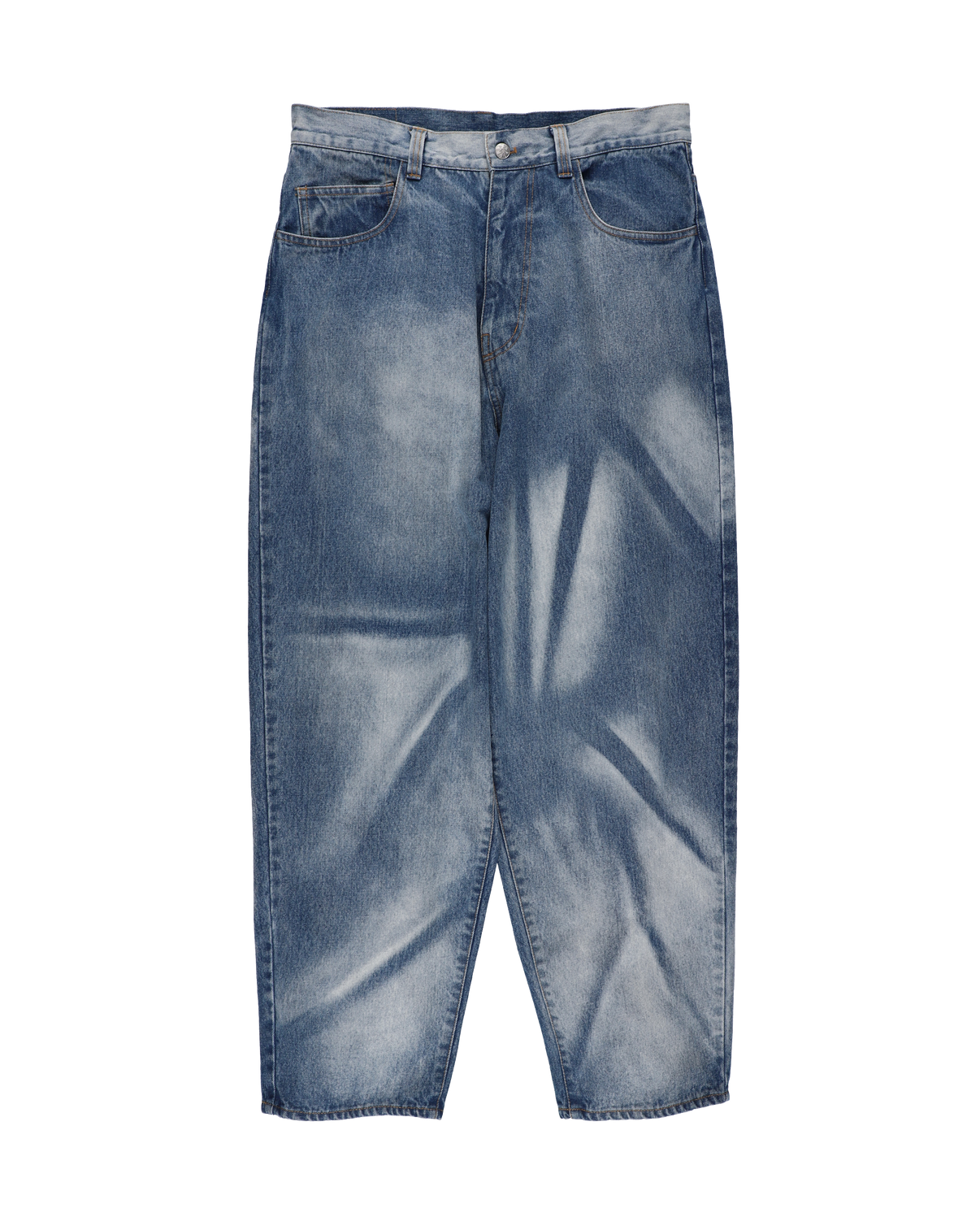 PHINGERIN’s signature jeans reinterpret the classic 5-pocket silhouette with a playful twist; a discreet sixth pocket tucked at the center of the back pocket, earning them the name “6 POCKET JEANS.” While the design remains understated, this unexpected detail serves as a bold accent. Featuring strong bleaching treatment, the latest model strikes a balance between vintage workwear and modern edge. The bleached beige version, in particular, is defined by its clean, sophisticated finish. Each pair is finished with contrast stitching to highlight its character. The back pockets are set slightly lower than standard, making them a standout feature when styled to be seen. With a clean tapered silhouette, the jeans maintain a sharp look even when worn with a relaxed fit, perfectly balancing both casual and refined looks.