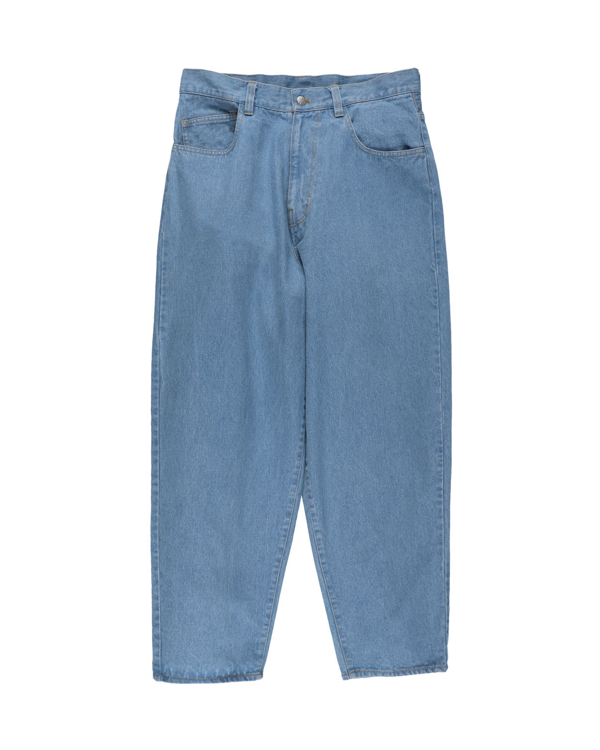 PHINGERIN’s signature jeans reinterpret the classic 5-pocket silhouette with a playful twist; a discreet sixth pocket tucked at the center of the back pocket, earning them the name “6 POCKET JEANS.” While the design remains understated, this unexpected detail serves as a bold accent. Available in classic sax, indigo, and black denim, each pair is finished with contrast stitching to highlight its character. The back pockets are set slightly lower than standard, making them a standout feature when styled to be seen. With a clean tapered silhouette, the jeans maintain a sharp look even when worn with a relaxed fit, perfectly balancing both casual and refined looks.