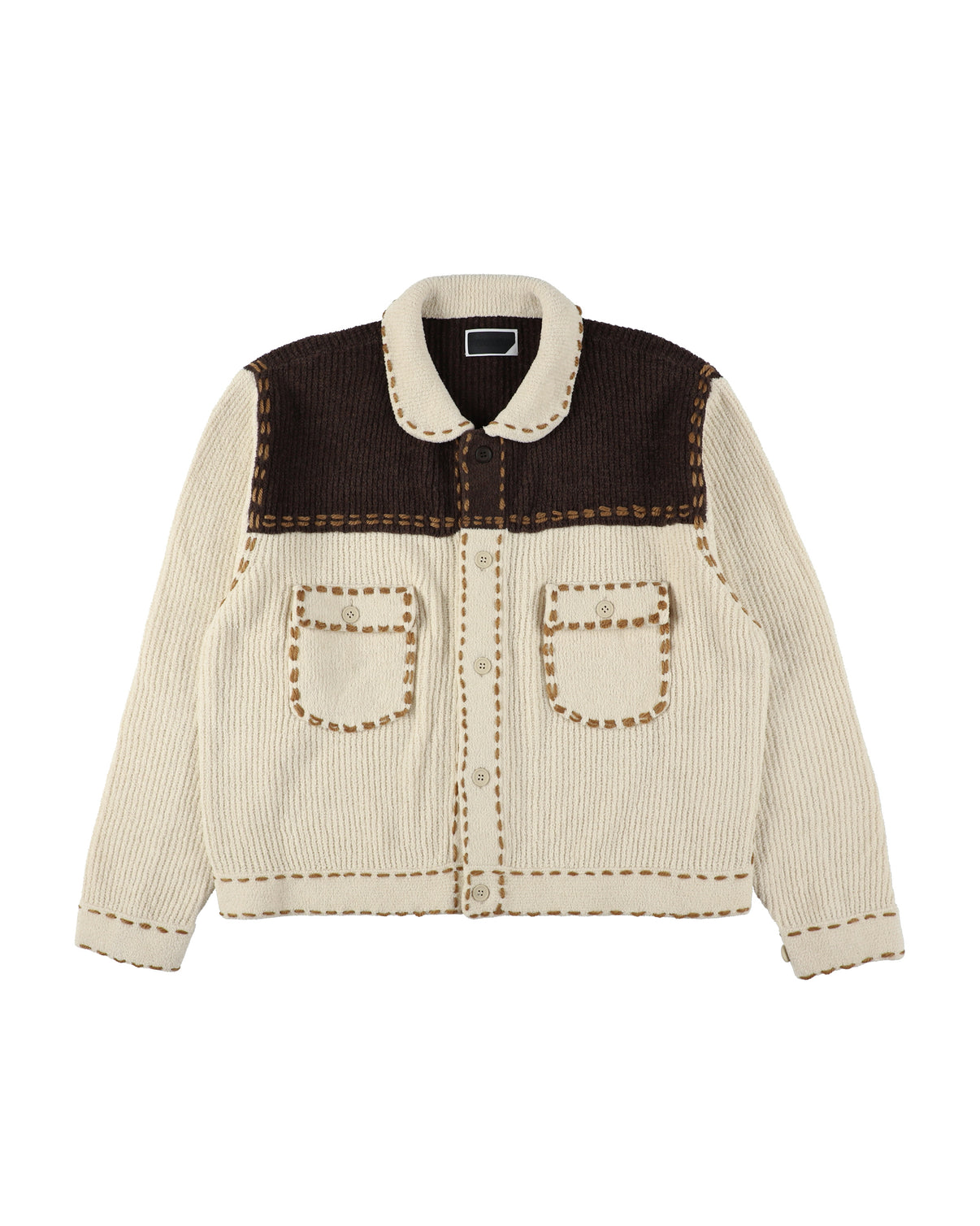 PHINGERIN signature knit! Organic cotton and recycled polyester blend for a light and warm feel. New colors are burgundy with a tonal gradation from parts to stitching, and beige with a work wear, free-spirited look. We have added an XL size due to popular demand.