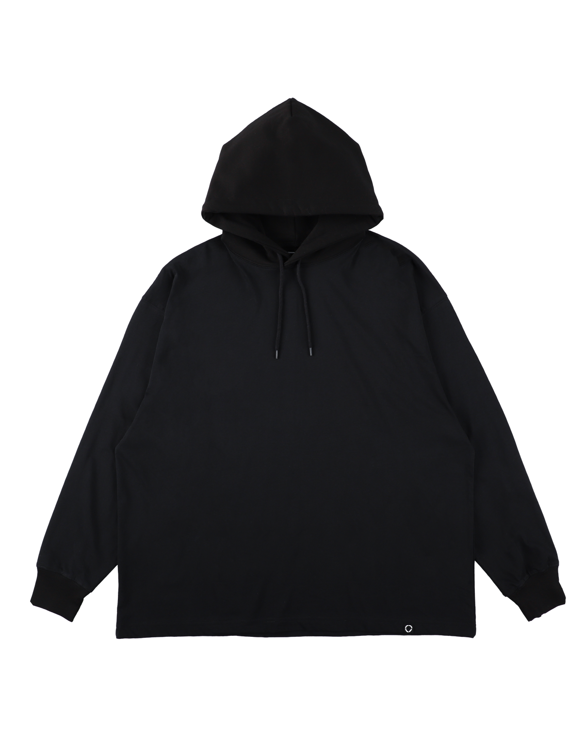 寒い時期でもお気に入りのTシャツをオーバーレイヤーで きるように設計されたオリジナルパーカ。身頃、袖、に天 竺、フードにスウェットを使用しており、着膨れするこ となくTeeやベストを重ね着することができます。 天竺だとくしゃっとなりがちなフードもしっかり立ち上がります。中にスウェットパーカーを着用しずらい前開きジャケットや、ウェブパーカニットとの相性もばっちりです。